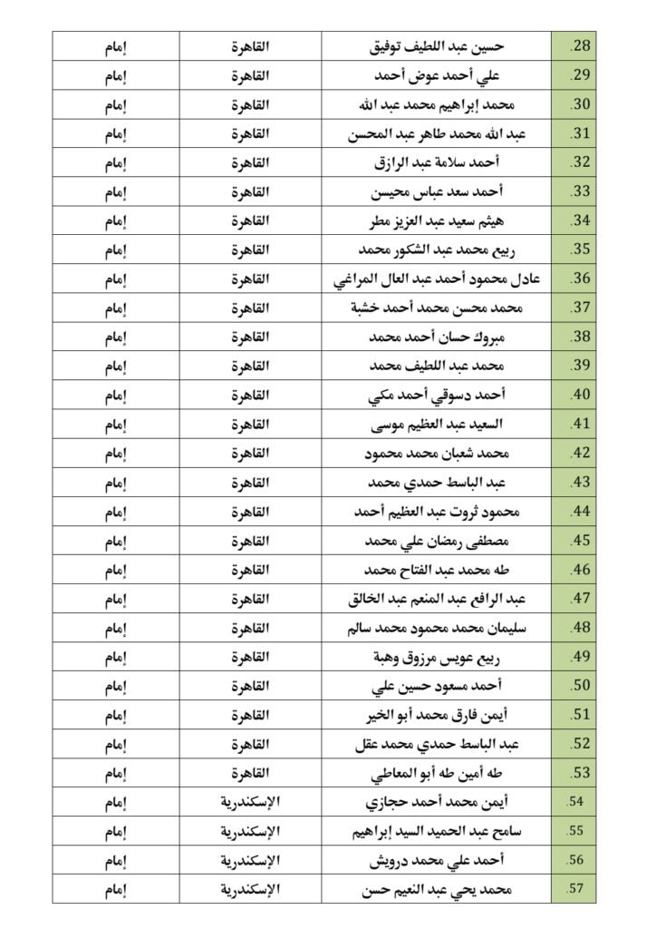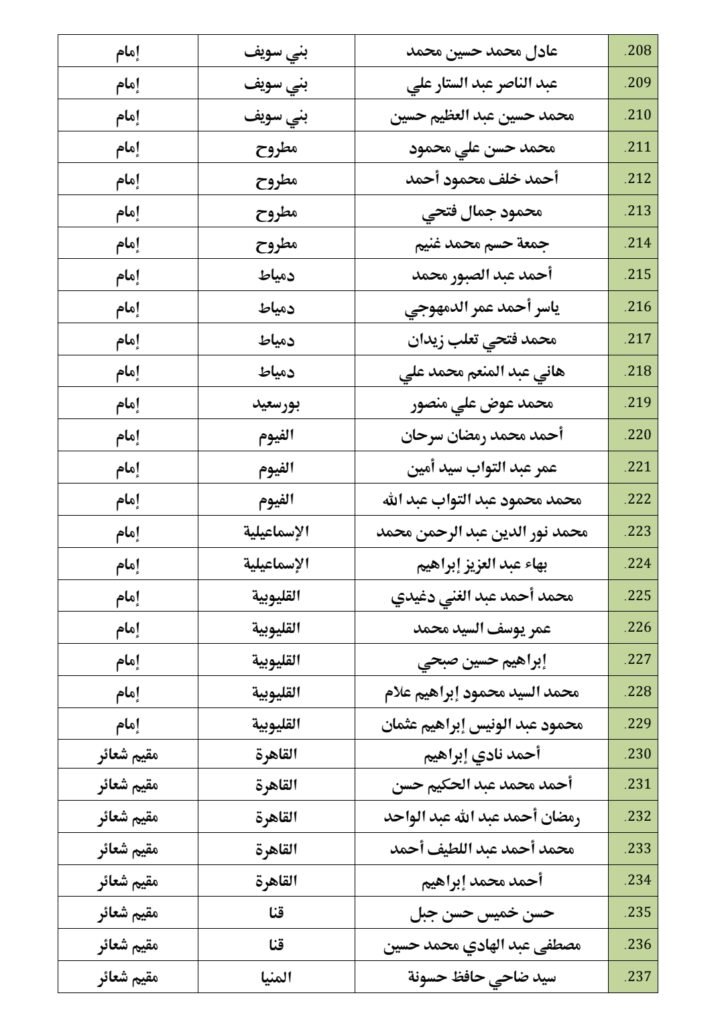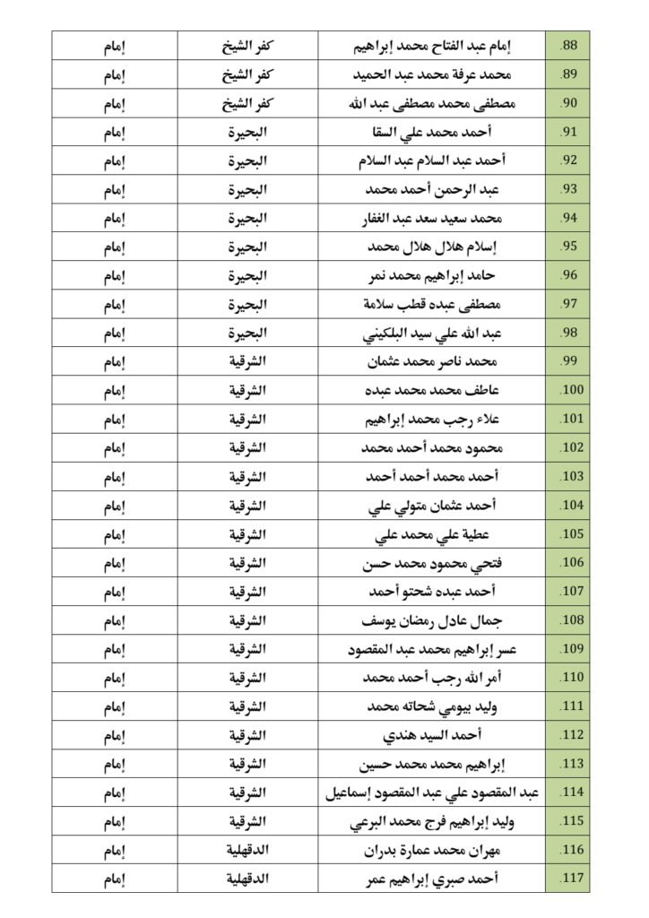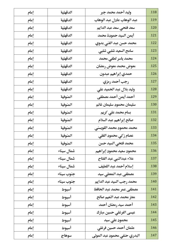 • الاثنين (١٧ نوفمبر ٢٠٢٥م): أوقاف المنوفية، شمال وجنوب سيناء، الفيوم، الإسماعيلية، دمياط.