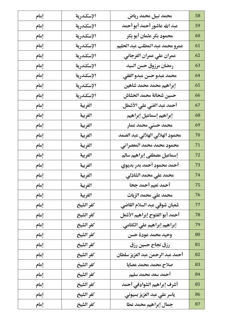• الأربعاء (١٢ نوفمبر ٢٠٢٥م): أوقاف الإسكندرية، الغربية، مطروح.