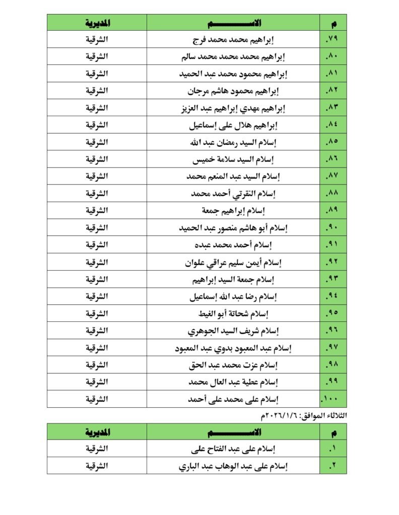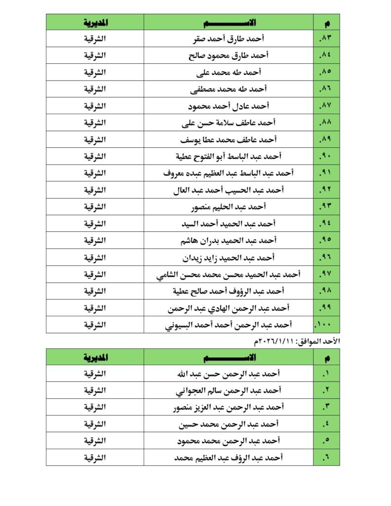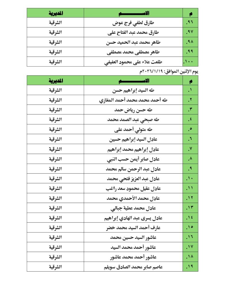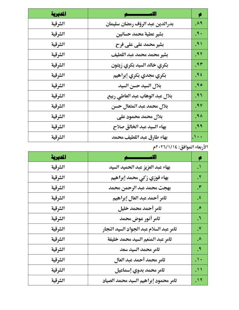 ومن المقرر أن تجرى المقابلات بالمقرات المحددة بكل مديرية من المديريات المذكورة، على أن تبدأ يوم الأحد الموافق الرابع من يناير عام ألفين وستة وعشرين، وذلك وفقًا للمواعيد الواردة بالجدول المعلن لكل مديرية.