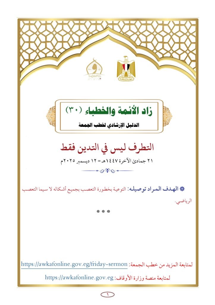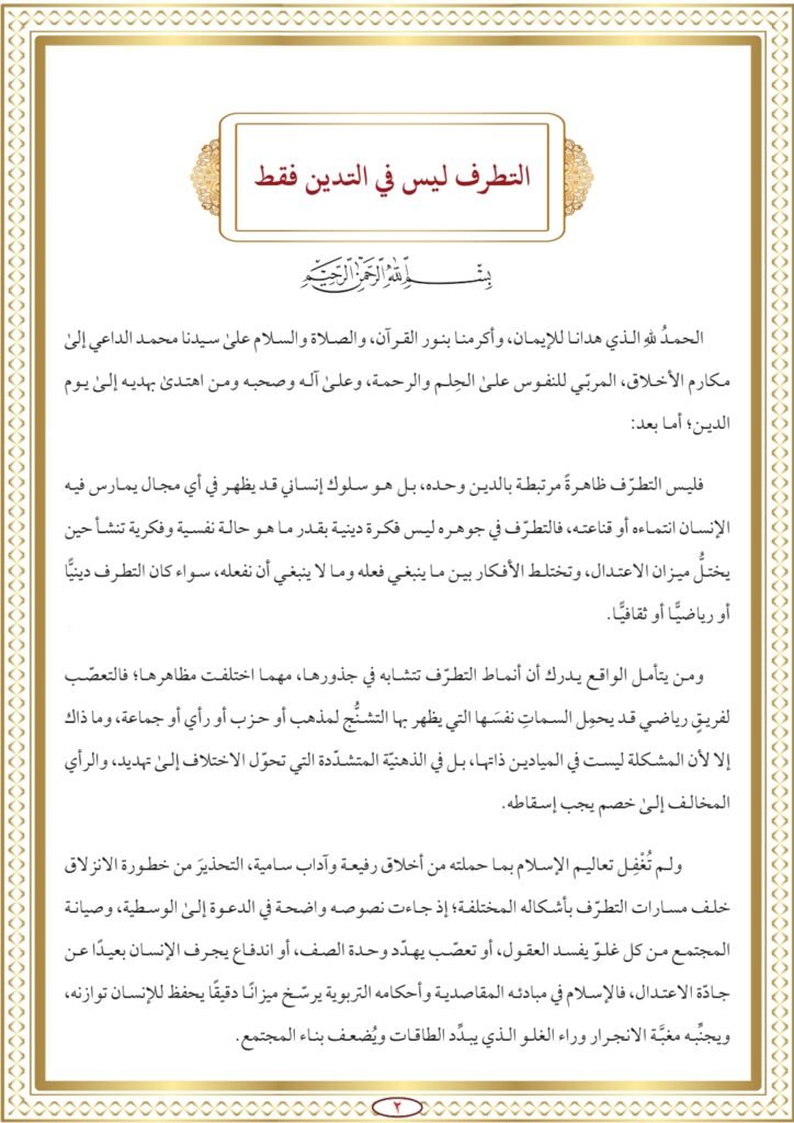 التطرف ليس في التدين فقط موضوع خطبة الجمعة القادمة