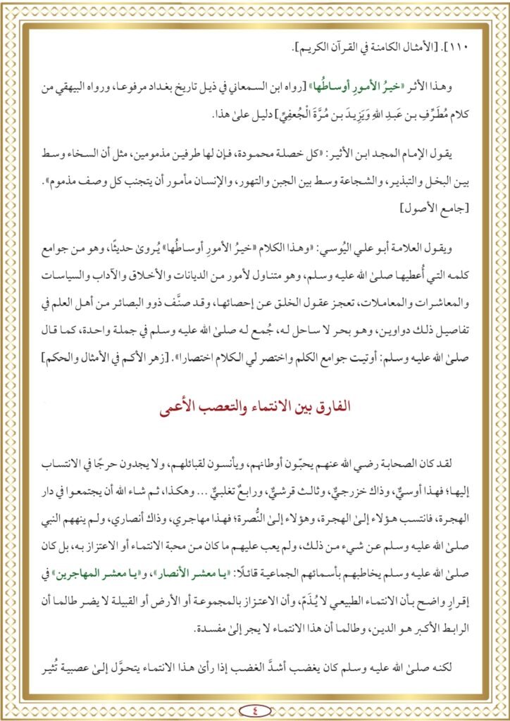 وهذا الأثر “خيرُ الأمورِ أوساطُها” [رواه ابن السمعاني في ذيل تاريخ بغداد مرفوعا، ورواه البيهقي من كلام مُطَرِّفِ بن عَبدِ اللَّهِ وَيَزِيدَ بن مُرَّةَ الْجُعفِيِّ] دليل على هذا.