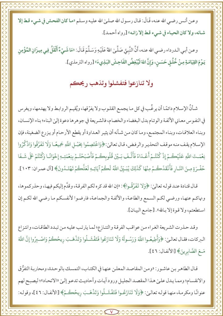 - ولا تنازعوا فتفشلوا وتذهب ريحكم