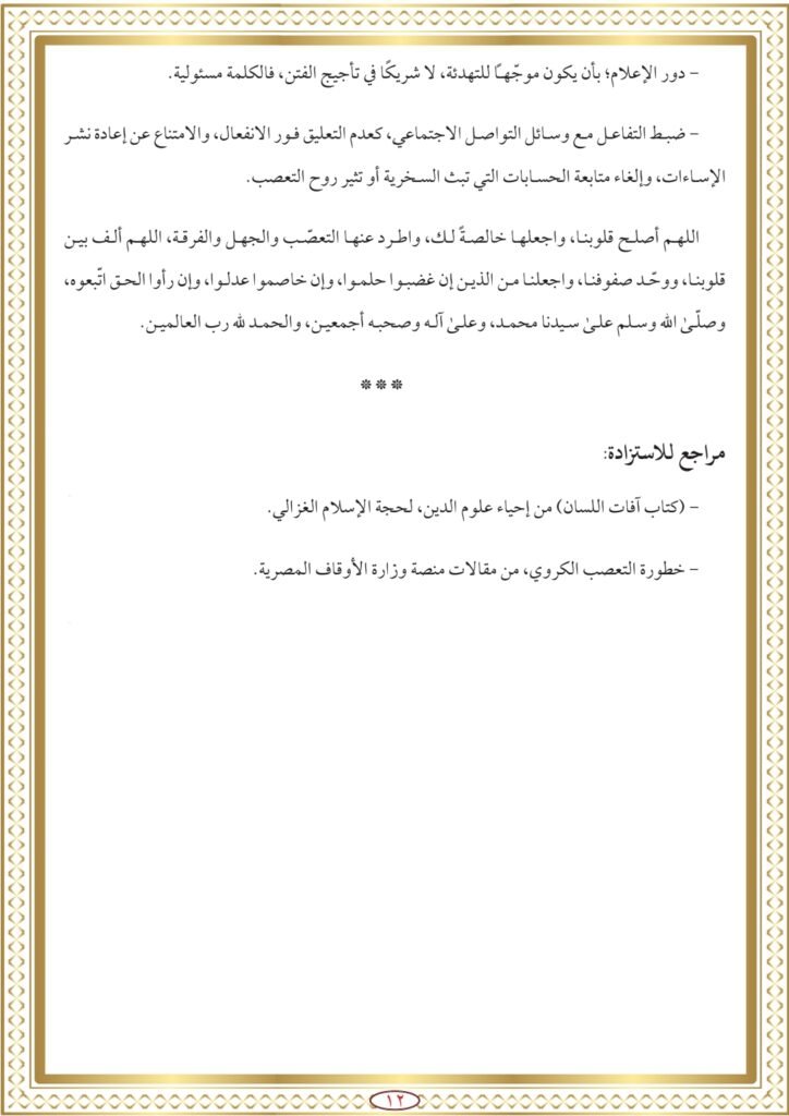 – دور الإعلام؛ بأن يكون موجّهاً للتهدئة، لا شريكًا في تأجيج الفتن، فالكلمة مسئولية.