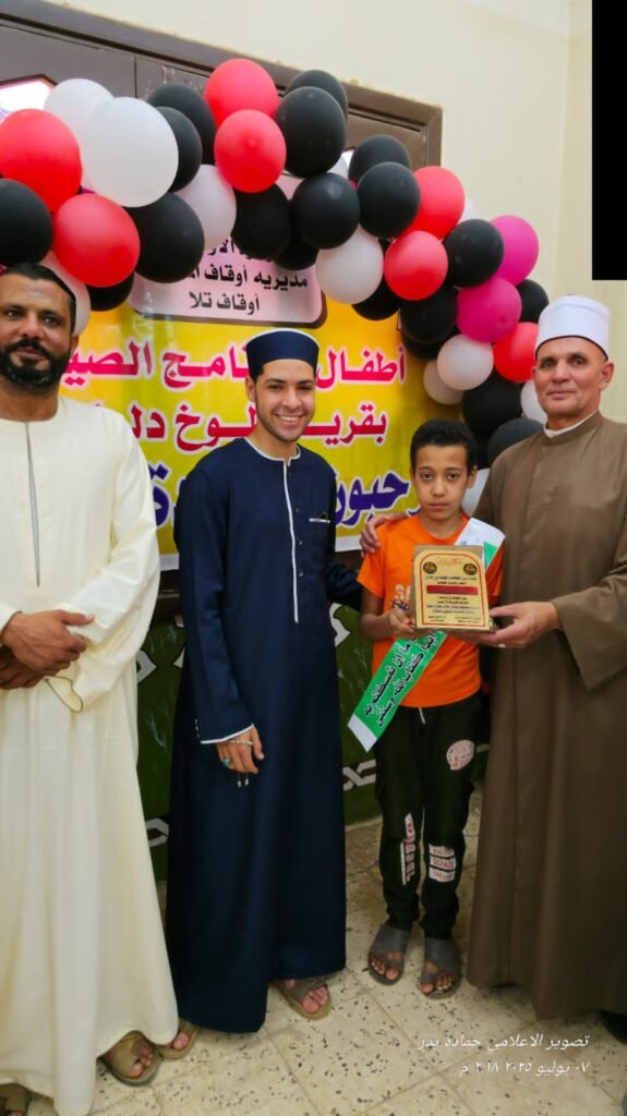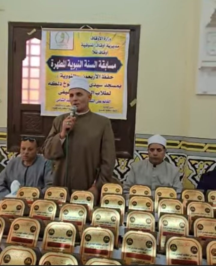 مسجد سيدي خالد بطوخ دلكة، في أجواء إيمانية مميزة، أقامت مديرية أوقاف المنوفية حفل تكريم 100 طفل من الفائزين في مسابقة السنة النبوية المطهرة تحت رعاية كريمة من معالي وزير الأوقاف الدكتور أسامة الأزهري، والدكتور محمد خليفة وكيل وزارة الأوقاف بالمنوفية.