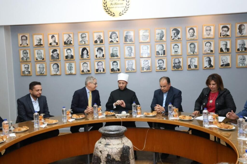 لبّى الأستاذ الدكتور أسامة الأزهري – وزير الأوقاف، دعوة كريمة من مؤسسة الأهرام لاستضافة ندوة لاستعراض جانب من كواليس برنامج «دولة التلاوة»، وكان في استقباله الدكتور محمد فايز فرحات – رئيس مجلس إدارة الأهرام، والأستاذ ماجد منير – رئيس تحرير الأهرام؛ فيما شارك في الندوة من جانب الشركة المتحدة للخدمات الإعلامية الأستاذ بمشاركة الأستاذ أحمد فايق – رئيس قطاع البرامج بالشركة المتحدة، والأستاذ عبد الله غلوش – نائب رئيس القطاع، وحضر الندوة من وزارة الأوقاف الدكتور أسامة رسلان – المتحدث الرسمي باسم وزارة الأوقاف؛ فيما شارك من الأهرام كل من الدكتور صبحي عسيلة، والأستاذ فاطمة شعراوي، والأستاذ فحتي محمود، والأستاذ إسماعيل العواصي، والأستاذ عبد الحميد عيد، والأستاذ محمد سباق، والأستاذة لوسي عبد الجواد، والأستاذ محمد مصطفى، والأستاذ محمد عبد الخالق؛ وتخلل اللقاء أسئلة ومقترحات منهم كانت مثارًا لنقاش علمي تلاقت فيه الأفكار على الرغبة في تقديم محتوى جذاب ومبتكر للكشف عن المواهب المصرية في شتى المجالات.