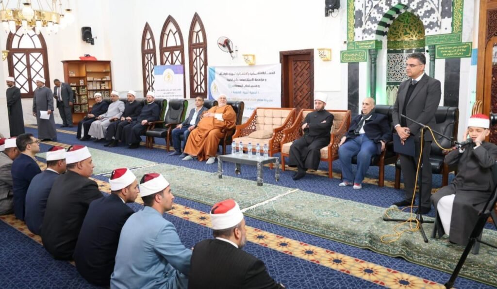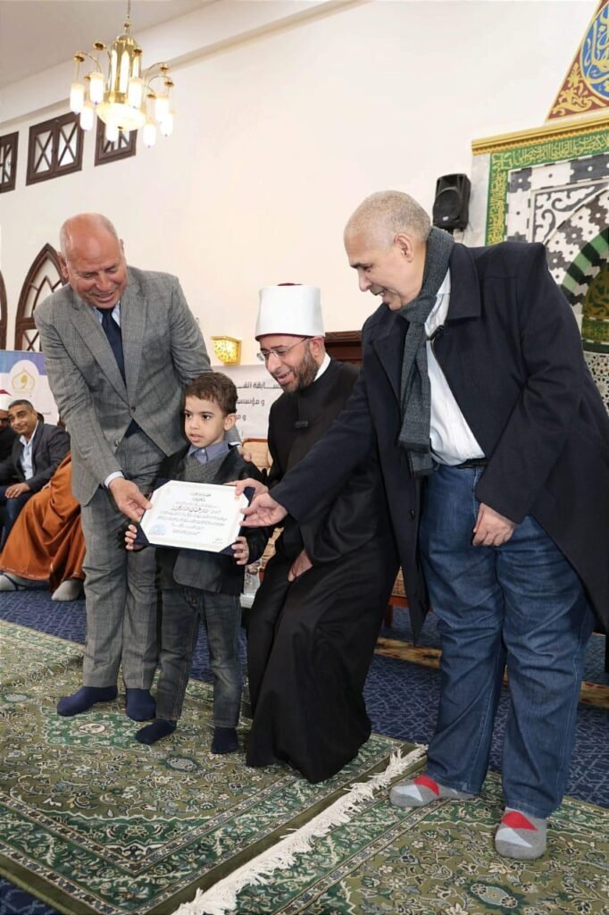 نظمت “مؤسسة محمد جلال الخيرية” احتفالية كبرى بمسجد أحباب المصطفى بمدينة الشروق لتكريم النابغين من حفظة كتاب الله عز وجل؛ برعاية كريمة من الأستاذ الدكتور أسامة الأزهري – وزير الأوقاف، وبحضور الدكتور إبراهيم صابر – محافظ القاهرة، والدكتور حازم إبراهيم – نائبًا عن محافظ القليوبية، والشيخ محمود أبو العزايم – مساعد الوزير لشئون التدريب والمراكز الثقافية ومراكز تحفيظ القرآن الكريم، والدكتور أسامة رسلان – المتحدث الرسمي للوزارة، والدكتور أسامة فخري الجندي – رئيس الإدارة المركزية لشئون المساجد والقرآن الكريم، والدكتور محمد رجب خليفة – رئيس الإدارة المركزية لشئون الدعوة، والدكتور خالد صلاح – مدير مديرية أوقاف القاهرة، والشيخ عبد الرحمن رضوان – مدير مديرية أوقاف القليوبية، ولفيف من قيادات الوزارة.