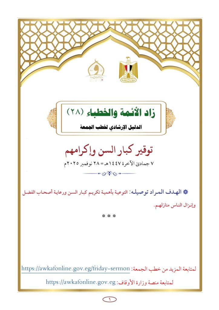 فإن توقير الكبار وأهل الفضل ليس سلوكًا اجتماعيًا عابرًا، بل هو مبدأ حضاري، ووصية نبوية، وعلامة على رُقيّ الإنسان قبل أن يكون علامة على رُقيّ المجتمع.