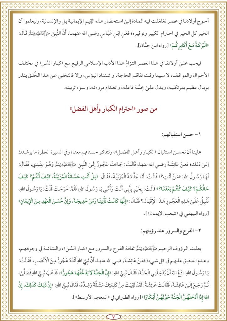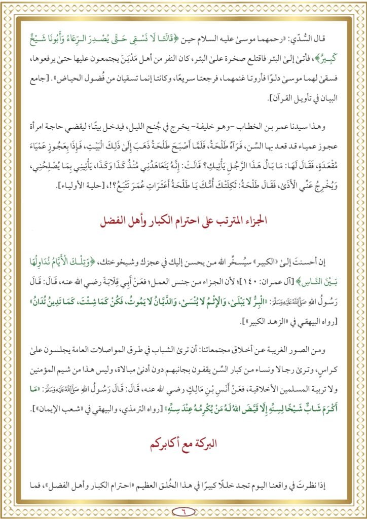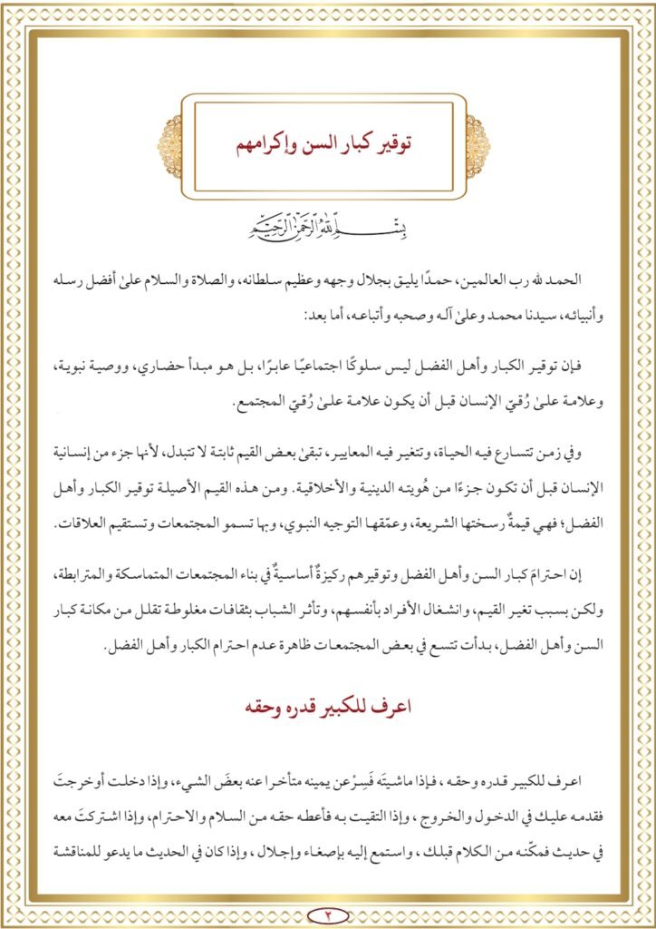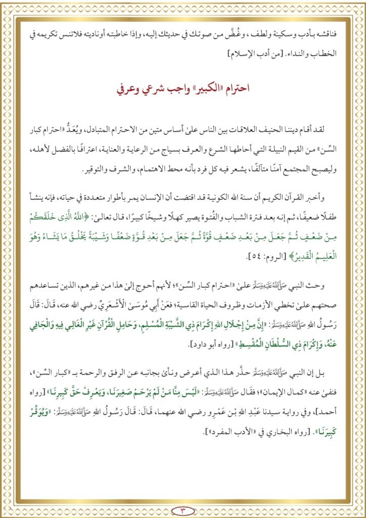 • احترام “الكبير” واجب شرعي وعرفي: