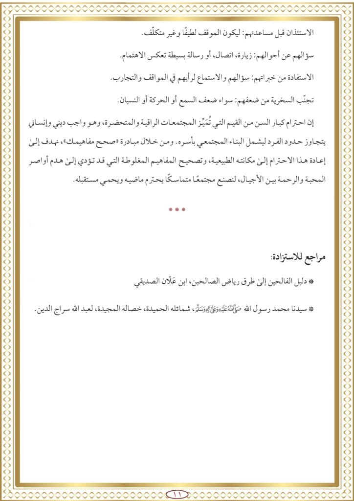 • إجراءات عملية لترسيخ ثقافة احترام كبار السن: