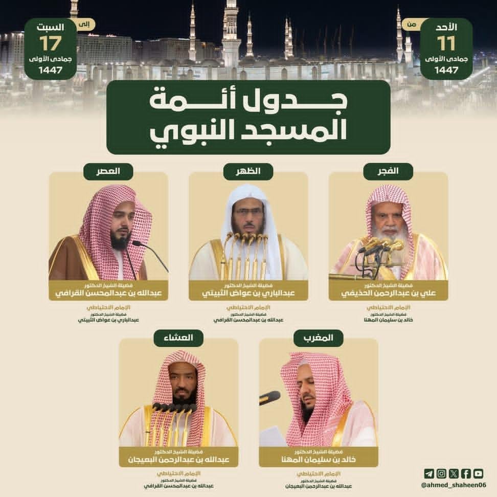 جدول الائمة بالمسجد النبوي،