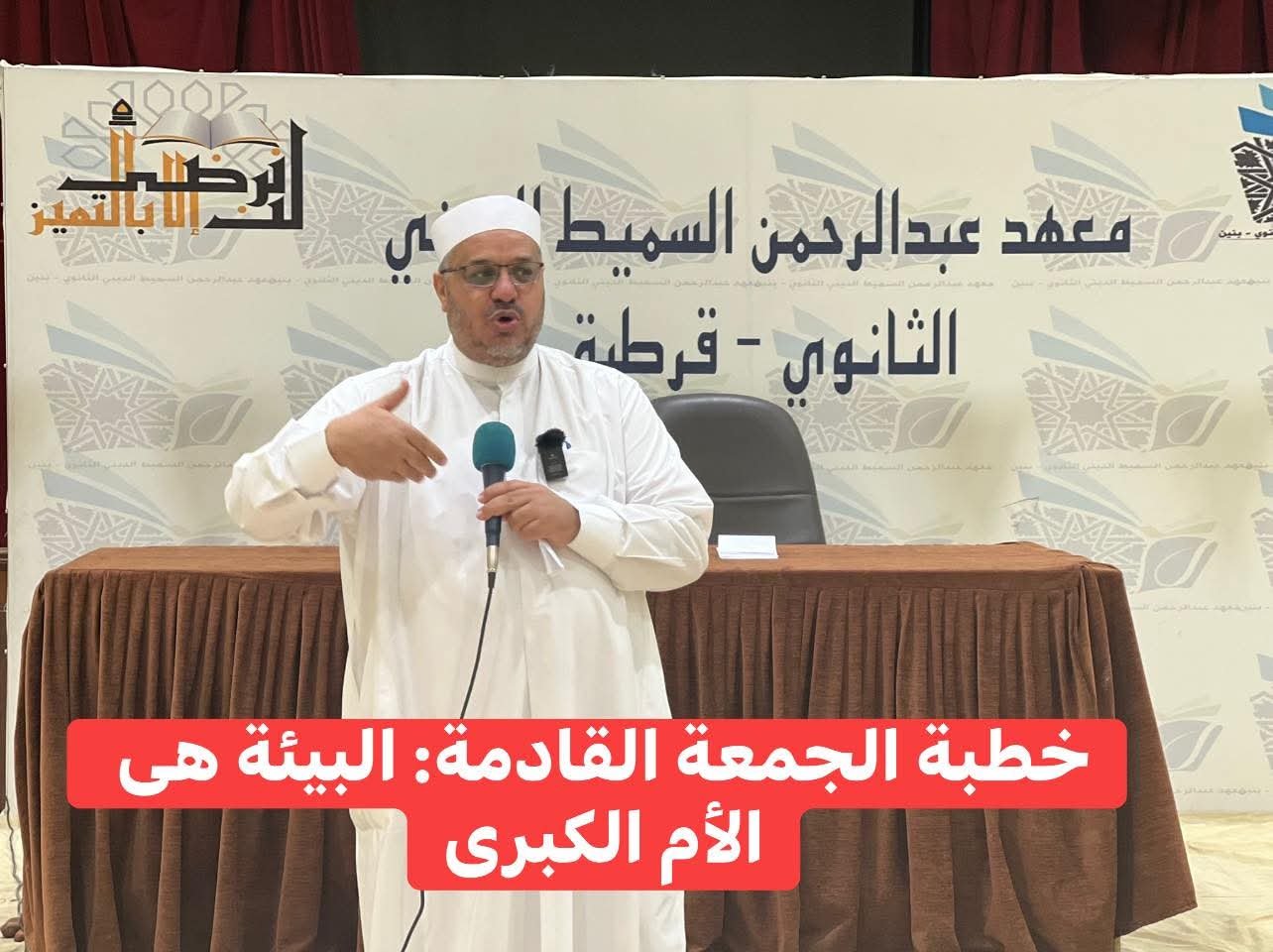 خطبةُ الجُمُعَةِ القَادِمَةُ: اَلْبِيئَةُ هِيَ الرَّحِمُ الثَّانِي وَالْأُمُّ الْكُبْرَى د/ مُحَمَّدٌ حَرْزٌ ، بِتَارِيخِ 2 جُمَادَى الأُولَى 1447هـ ، المُوَافِقَةُ 24 أُكْتُوبَرَ 2025م.