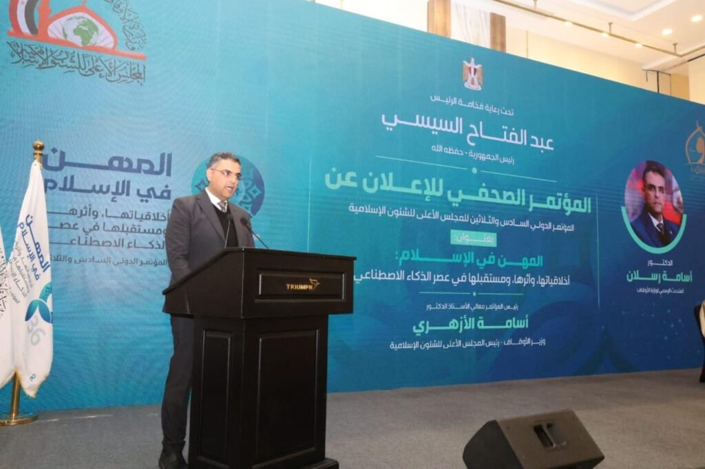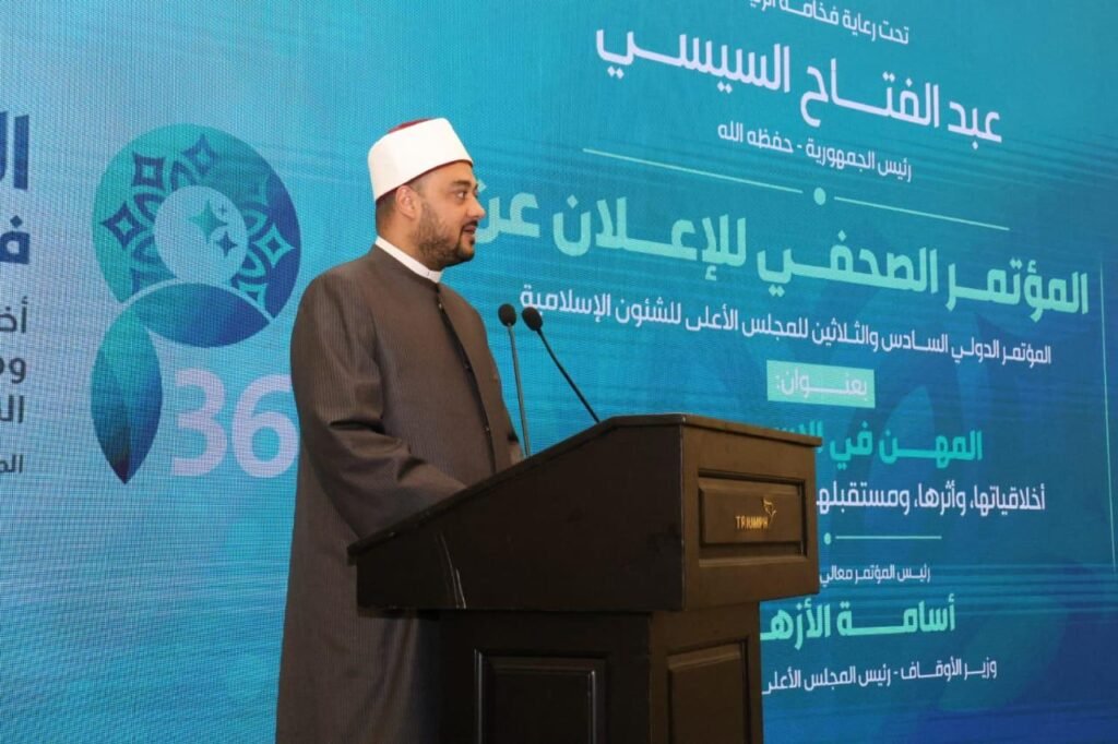 عقدت وزارة الأوقاف مؤتمرًا صحفيًّا للإعلان عن تفاصيل المؤتمر الدولي السادس والثلاثين للمجلس الأعلى للشئون الإسلامية، الذي سيعقد برعاية كريمة من فخامة الرئيس عبد الفتاح السيسي – رئيس الجمهورية (يحفظه الله)، بعنوان: «المهن في الإسلام: أخلاقياتها، وأثرها، ومستقبلها في عصر الذكاء الاصطناعي»، على مدار يومي ١٩ و٢٠ من يناير الجاري، بفندق تريومف لكشري بالتجمع الخامس بالقاهرة، وذلك بحضور قيادات وزارة الأوقاف، وضيوف مصر المتدربين من جمهورية الفلبين، ولفيف من السادة الصحفيين والإعلاميين. وقد استهل المؤتمر بتلاوة قرآنية مباركة للقارئ الدكتور عبد الناصر حرك – القارئ بالإذاعة والتليفزيون المصري.