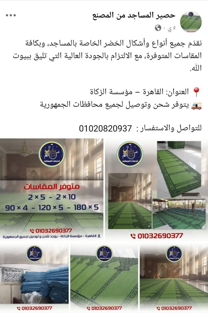 احجز حصير المساجد من المصنع بأعلى جودة وخامة ومقاسات متنوعة