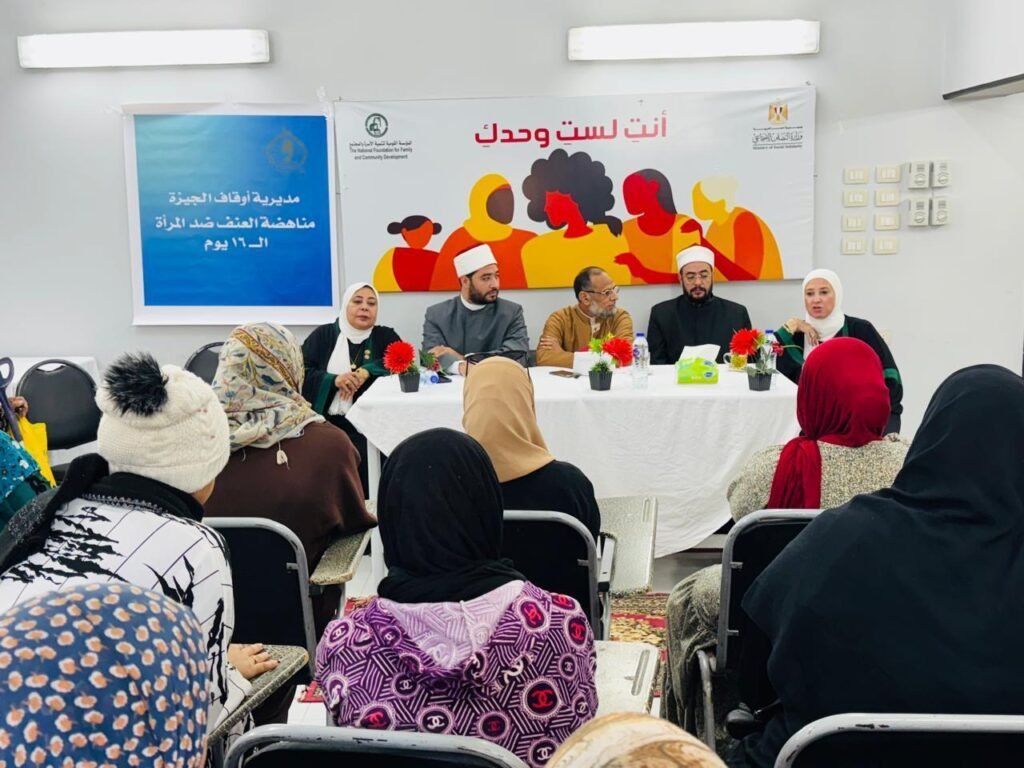 نفّذت وزارة الأوقاف، بالتعاون مع وزارة التضامن الاجتماعي والمجلس القومي للمرأة؛ سلسلةَ فعاليات موسّعة ضمن مبادرة 16 يومًا لمناهضة العنف ضد المرأة، وذلك بتوجيهات كريمة من الأستاذ الدكتور أسامة الأزهري – وزير الأوقاف، وإشراف الأستاذة الدكتورة مروى ياسين – مساعد الوزير لشئون الواعظات، وبمتابعة مديرو المديريات في محافظات سوهاج والجيزة والفيوم والإسكندرية والدقهلية والمنيا وبني سويف وكفر الشيخ والبحيرة ودمياط.
