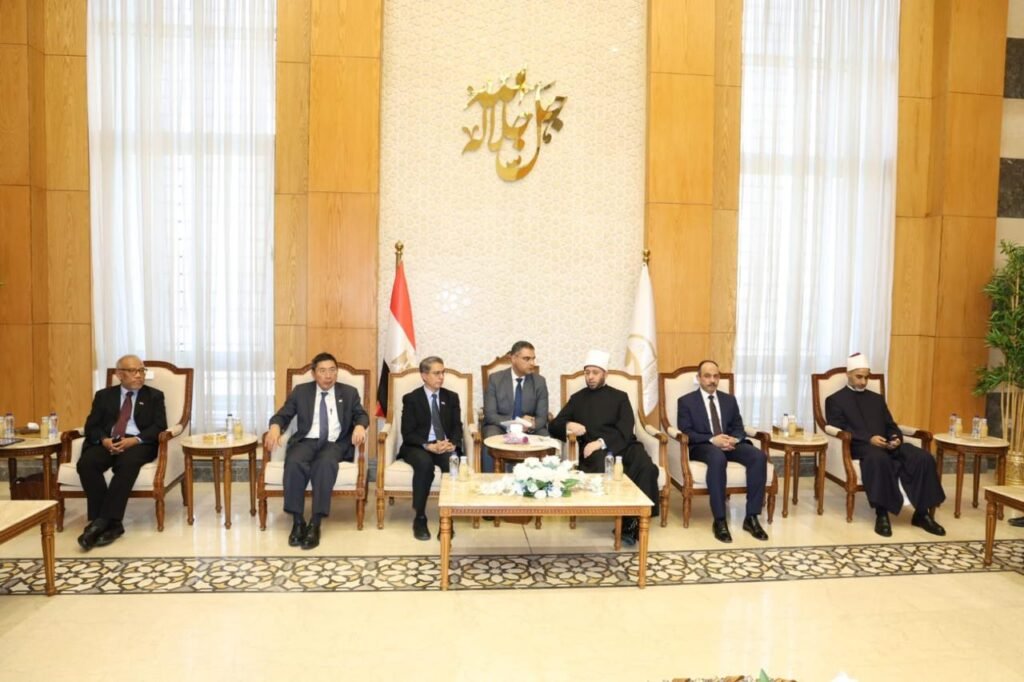 وزير الأوقاف يستقبل نظيره السنغافوري ويصحبه في جولة بمسجد مصر الكبير