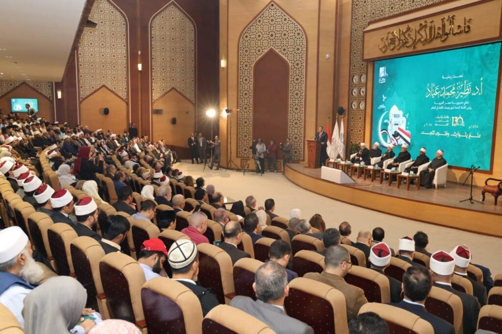شارك الأستاذ الدكتور أسامة الأزهري – وزير الأوقاف، في الاحتفال الذي نظمته دار الإفتاء المصرية، إحياءً لمرور 130 عامًا على تأسيسها، بمشاركة الأستاذ الدكتور نظير عياد – مفتي الجمهورية، والأستاذ الدكتور محمد الجندي – الأمين العام لمجمع البحوث الإسلامية، نائبًا عن فضيلة الإمام الأكبر الأستاذ الدكتور أحمد الطيب – شيخ الأزهر الشريف، والأستاذ الدكتور نصر فريد واصل – عضو هيئة كبار العلماء، مفتي الجمهورية الأسبق، والأستاذ الدكتور علي جمعة – عضو هيئة كبار العلماء، مفتي الجمهورية الأسبق، والأستاذ الدكتور شوقي علام – رئيس اللجنة الدينية بمجلس الشيوخ، مفتي الجمهورية السابق.